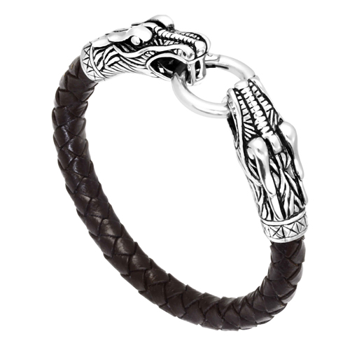 STAINLESS STEEL BRACELET IN BLACK PU WITH 2 S/S SNAKE HEAD WITH S/S BUCKLE