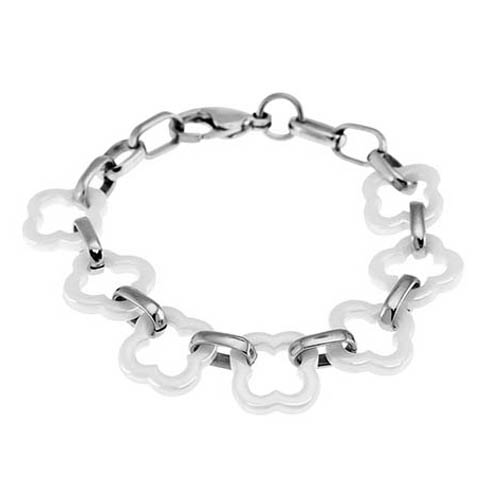 STAINLESS STEEL BRACELET ALL IN STEEL COLOR WITH FLOWER CHAIN IN CERAMIC BLACK OR WHITE COLOR