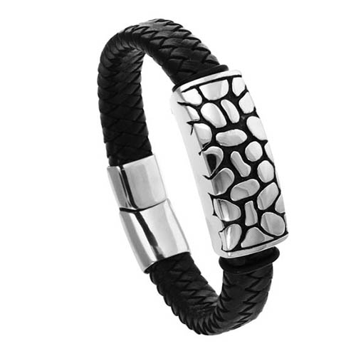 STAINLESS STEEL BRACELET IN BLACK LEATHER WITH MAGNET LOCK
