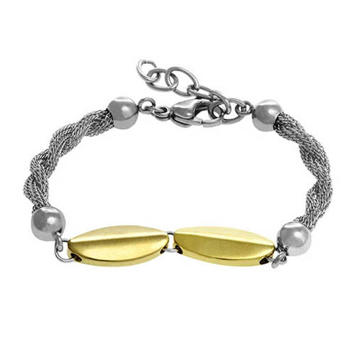 STAINLESS STEEL BRACELET IN IPG 2 TONE WITH 2 OVAL IN IPG WITH 4 BEADS AND S/S WIRE