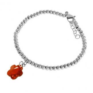 STAINLESS STEEL BRACELET WITH S/S BEADS WITH CRYSTAL FLOWER