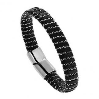 STAINLESS STEEL BRACELET IN BLACK PU WITH S/S WIRE WITH S/S MAGNET BUCKLE