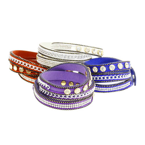 STAINLESS STEEL STRAND BRACELET 4 DIFFERENCE COLORS STRAND WITH STAINLESS STEEL BUTTON WITH CZ STONES & S/S CHAIN