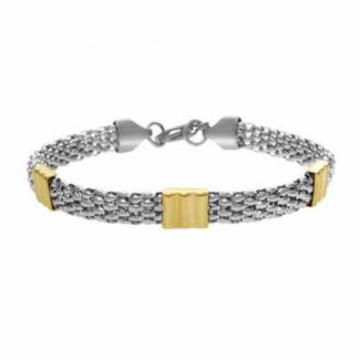 STAINLESS STEEL BRACELET WITH 3 PATTERN IPG PIECES WITH CLIP IPG 2 TONE