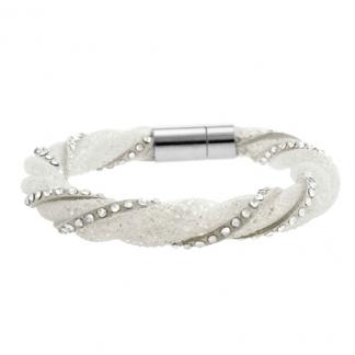 STAINLESS STEEL BRACELET PU WHITH BRAIDED WITH S/S MAGNET LOCK AND CRYSTAL.