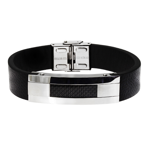 STAINLESS STEEL BRACELET WITH LEATHER. WITH CARBEN FIBER IN THE ID PLATE