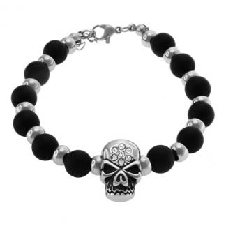 STAINLESS STEEL BRACELT WITH ONYX TONE AND STEEL BALL