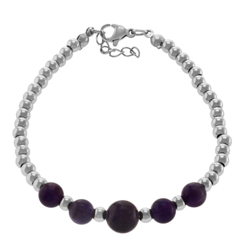 STAINLESS STEEL BRACELET WITH GARNET AND STEEL BEADS