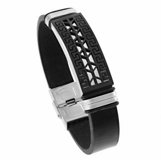 STAINLESS STEEL BRACELET WITH BROWN LEATHER. THE ID PLATE IN IPB TWO TONE
