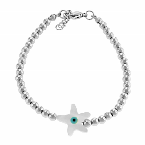 STAINLESS STEEL BRACELET WITH 4MM STEEL BALL AND ONE starfish SHELL