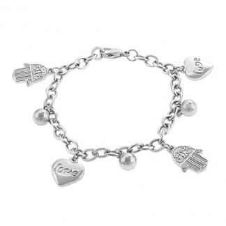 STAINLESS STEEL BRACELET ALL IN SS COLOR WITH 2 HANGING CHARMS AND BALLS