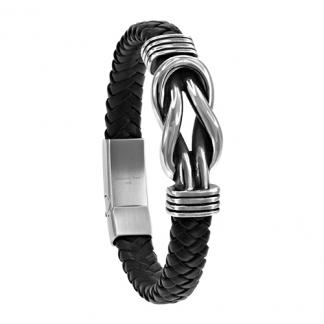STAINLESS STEEL BRACELET WITH BLACK LEATHER / ALL IN SS COLOR