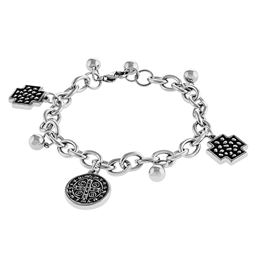 STAINLESS STEEL BRACELET WITH BOTH SIDE PLATING BLACK OIL CROSS CHARMS ALL IN SS COLOR.