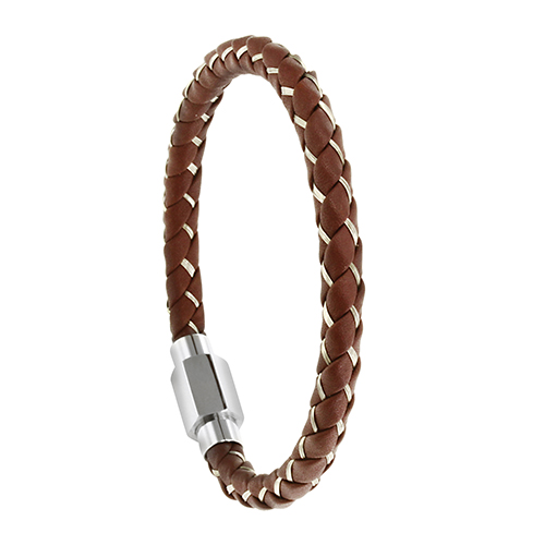 STAINLESS STEEL BRACELET WITH BROWN LEATHER AND WIRE