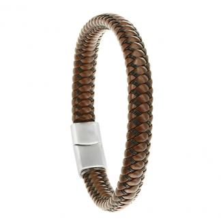 STAINLESS STEEL LEATHER BRACELET IN BROWN COLOR