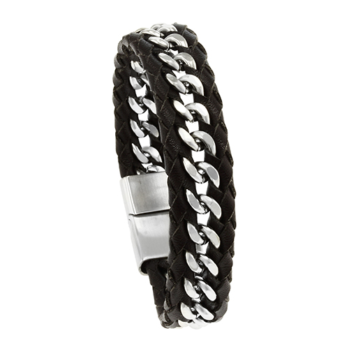 STAINLESS STEEL BRACELET WITH BLACK LEATHER AND WIRE