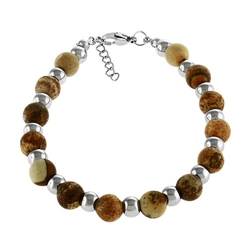 STAINLESS STEEL BRACELET WITH NATURE STONES IN BROWN COLOR AND STEEL BALL