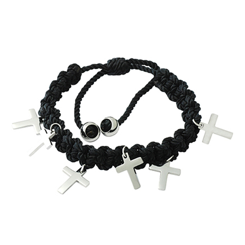 Stainless Steel Bracelet Black cotton string with 6pcs hanging cross