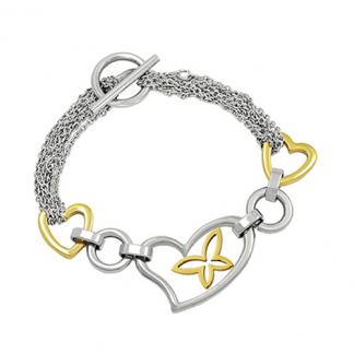 Stainless Steel Bracelet IPG two tone heart & butterfly shape