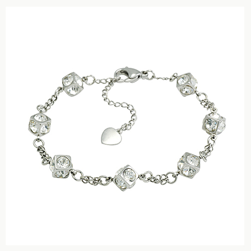 Stainless Steel Bracelet 7pcs CZ with Heart