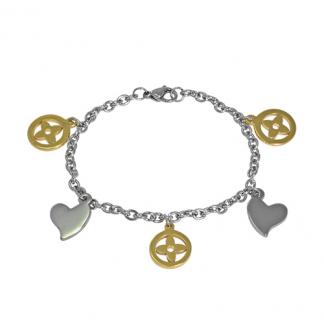 Stainless Steel Bracelet IPG two tone round with trebol & heart shape