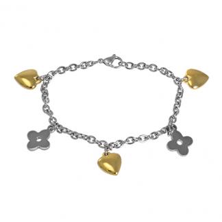 Stainless Steel Bracelet In IPG two tone heart & trebol shape