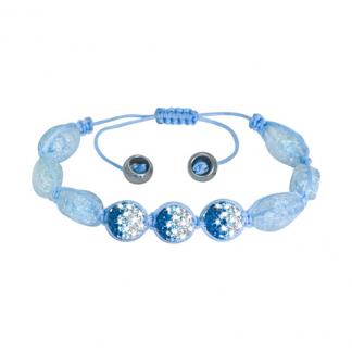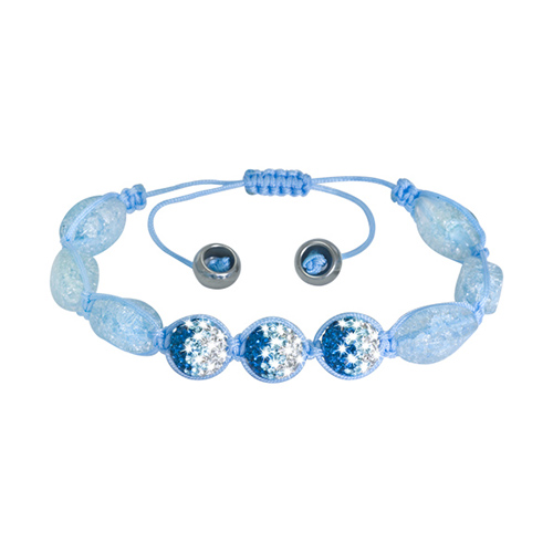 Stainless Steel Bracelet With 3 blue & white crystal ball with cz in outer dia. 11mm and 6 blue oval crystal