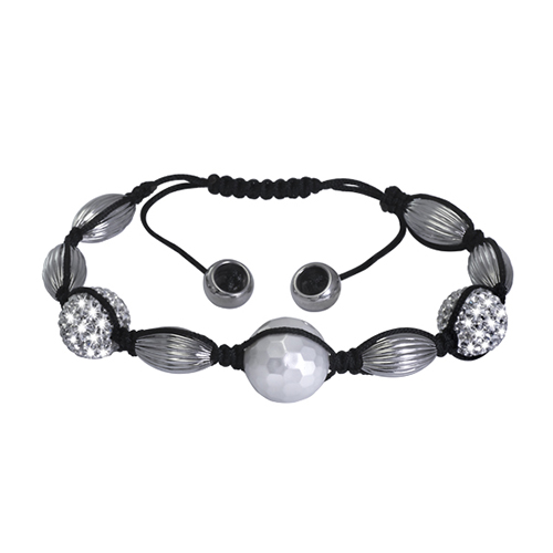 Stainless Steel Bracelet With 2pcs white crystal ball in outer dia. 12mm And with one synthetic pearl ball with stainless steel