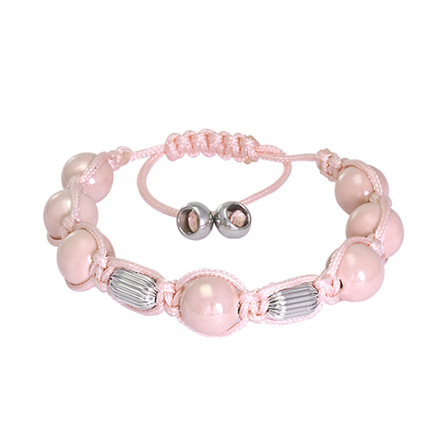Stainless Steel Bracelet Pink Ball in 12mm with stainless steel