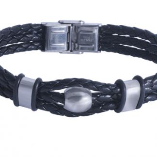 Stainless steel bracelet 3pcs PU in one pc with 1pcs stainless steel Balls