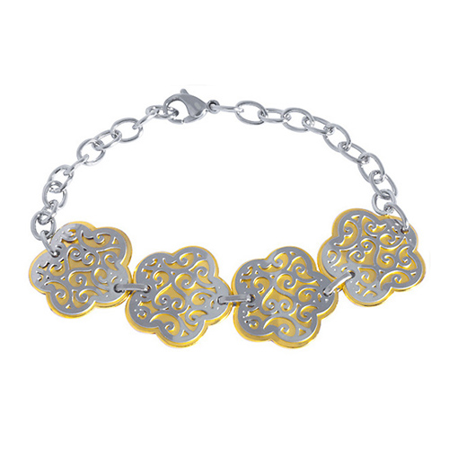 Stainless Steel Bracelet IN IPG 2 TONE WITH 4 PCS OF FLOWER