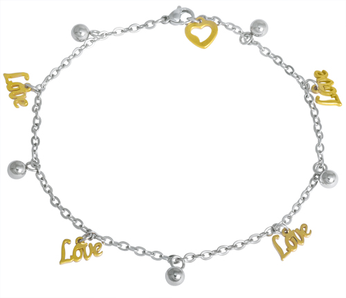 Stainless Steel Bracelet IN IPG 2 TONE WITH 5PCS OF BALLS AND 4PCS OF ?LOVE?