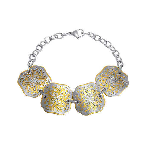 Stainless Steel Bracelet IN IPG 2 TONE WITH 4PCS OF SQUARE
