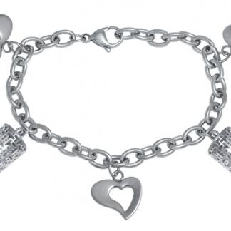 Stainless Steel Bracelet WITH 3PCS OF HEART AND 2PCS OF CYLINDER WITH CZ