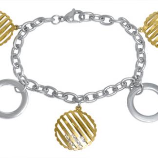 Stainless Steel Bracelet IN IPG 2 TONE WITH 3PCS OF IPG CIRCLE ND 2PCS OF S/S CIRCLE WITH CZ