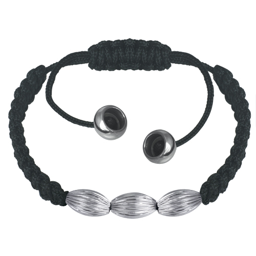 Stainless Steel Bracelet Three Oval Stainless Steel Beads with cotton string