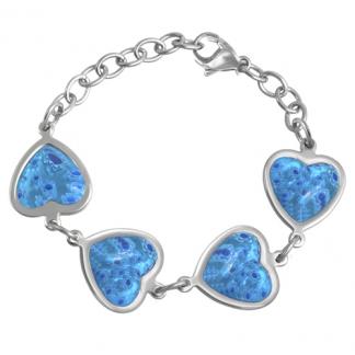 Stainless Steel Bracelet in Steel color with 4 HEART of BLUE MURANO STONE
