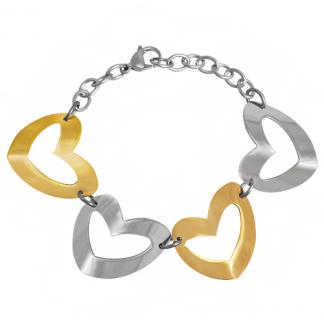 Stainless Steel Bracelet WITH 4 HEART SHAPE IN IPG TWO TONE