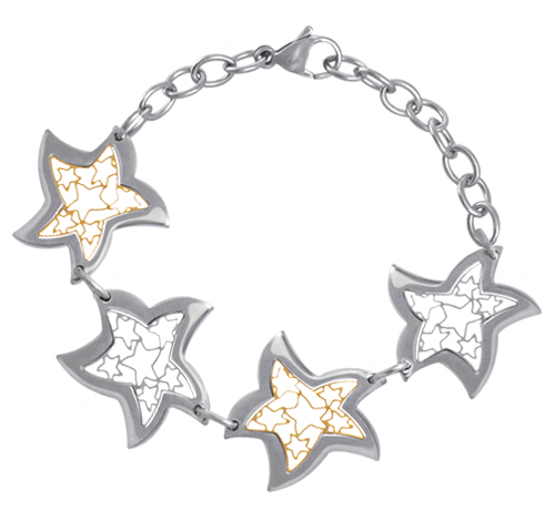 Stainless Steel Bracelet WITH 4 STAR SHAPE IN IPG TWO TONE