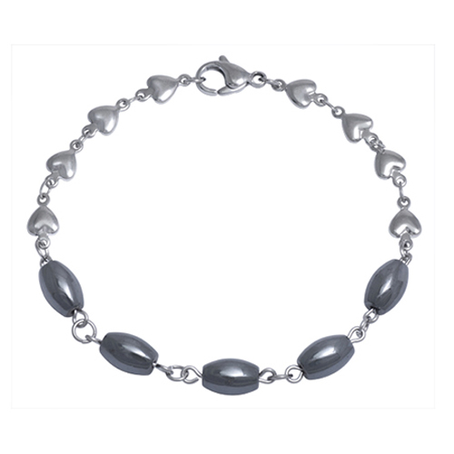 Stainless Steel Bracelet WITH 5 HEMATITE BEADS WITH HEART CHAIN OVAL HEMATITE