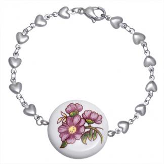 Stainless Steel Bracelet WITH IMITATION CERAMIC CIRCLE PIECE WITH FLOWER PATTERN WITH HEART CHAIN