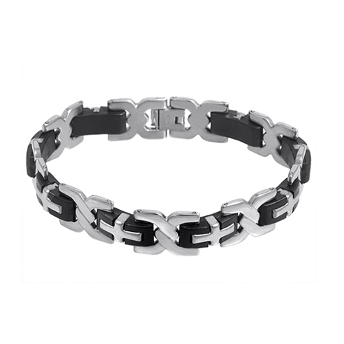 Stainless Steel Bracelet WITH CROSS LINK WITH PU ALL IN STEEL COLOR