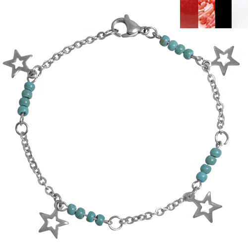 Stainless Steel Charm Bracelet WITH 4 STAR SHAPE CHARM WITH 4 SETS OF TURQUOISE STONE