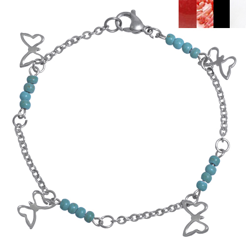 Stainless Steel Charm Bracelet WITH 4 BUTTERFLY SHAPE CHARM WITH 4 SETS OF TURQUOISE STONE