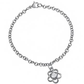 Stainless Steel Bracelet WITH FLOWER SHAPE CHARM WITH CZ ALL IN STEEL COLOR