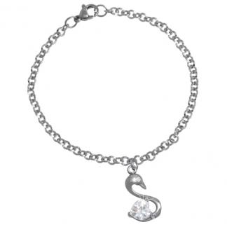 Stainless Steel Bracelet WITH SWAN SHAPE CHARM WITH 1 SMALL CZ AND 1 BIG HEART SHAPE CZ ALL IN STEEL COLOR