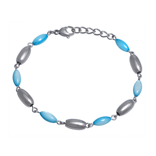 Stainless Steel Bracelet WITH 6 BLUE OVAL BEADS WITH 5 OVAL BEADS IN S/S