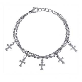 Stainless Steel Bracelet WITH 2 CHAIN WITH 5 CHARM IN CROSS SHAPE ALL IN STEEL COLOR
