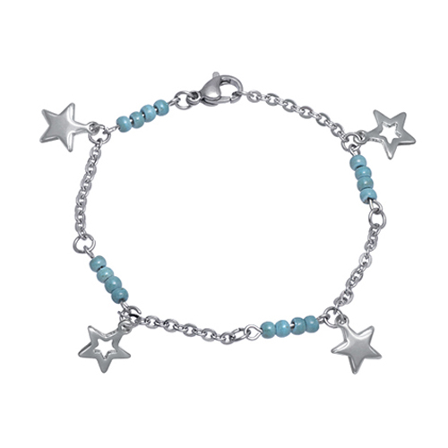 Stainless Steel Bracelet WITH 4 STAR (2 SOLID 2 WITH CUT OUT) WITH 4 SETS OF TURQUOISE STONE