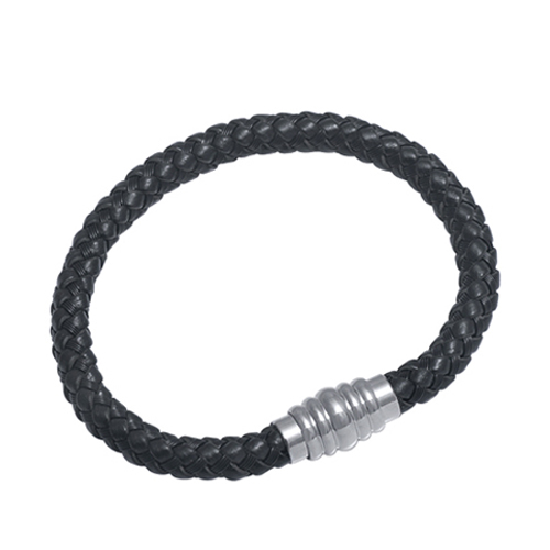 STAINLESS STEEL BRACELET WITH BLACK LEATHER WITH BLACK WIRE WITH MAGNET LOCK